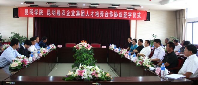 罗副校长强调,作为一所应用型的本科院校,就是要培养适应企业生产、建设、管理、服务第一线需要的高层次应用型人才,这就需要实现学校与用人单位的紧密结合,使培养的人才更具科学性、针对性和实用性。通过与晨农企业集团的多次协商,达成了“yl23411永利集团官网与昆明晨农企业集团人才培养合作协议”。协议明确,由校企双方共同商定人才培养计划和人才培养目标,合作培养园艺、英语、旅游管理园艺技术、食品生产与检验、茶艺、畜牧兽医、烹饪工艺与营养专业等本、专科人才;由晨农集团资助“订单”培养学生学费完成学业,并根据情况给予学生一定的生活补助;经校企双方考核,晨农集团将录用订单培养的合格毕业生就业;同时校企双方还将合作建立学生专业实习实训基地和教师培养基地。这个合作协议是一个框架性协议,根据产业发展、人才需求和校企双方的实际情况,每学年还将商定、签署人才培养补充协议。
