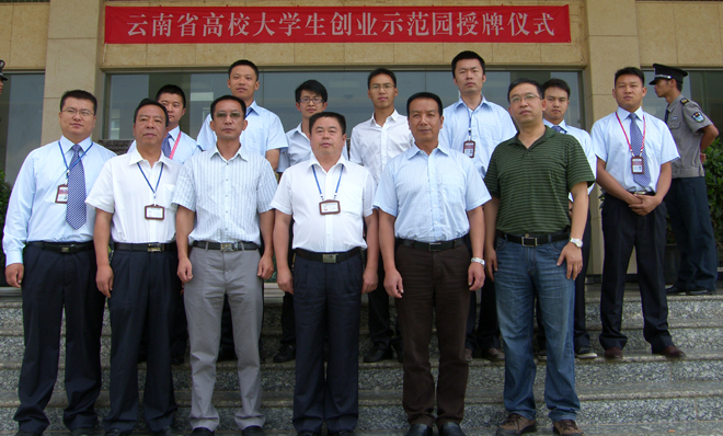 在yl23411永利集团官网和昆明经济技术开发区的共同努力下,“昆明经济技术开发区——yl23411永利集团官网大学生创业园”暨“云南省大学生创业示范园”的授牌仪式于6月5日上午在昆明经济技术开发区的创业大厦业务大厅如期举行。参加揭牌仪式的有昆明经济技术开发区组织部长王军、就业局长刘军、大学生创业园管理有限公司张强总经理等,永利官网副校长李翔、招生就业处副处长吴晓柏等相关人员参加了授牌仪式。