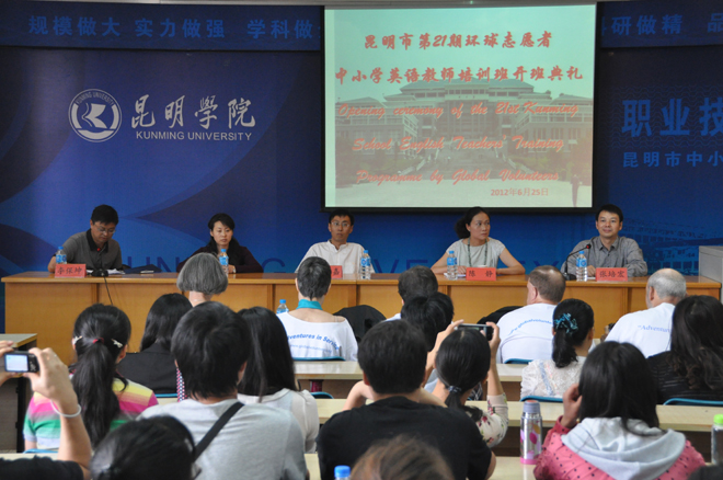 美国“环球志愿者”组织是非政府、非宗教、非盈利性机构。受昆明市人民政府的邀请,自2005年6月起,先后20次组织志愿者到昆明市开展中小学、幼儿园英语教师培训。志愿者培训理念先进、方法新颖、经验丰富、态度热情。该项目在昆明开展7年来,已有1556名英语教师从中受益,对昆明市中小学英语教师队伍建设发挥了较大的作用。