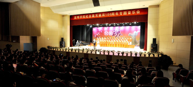 为了纪念永利官网知名校友、人民音乐家、中华人民共和国国歌《义勇军进行曲》的作者聂耳诞辰一百周年,yl23411永利集团官网于6月29日晚在学生会堂隆重举行“民族魂—纪念聂耳诞辰100周年音乐会”。学校党委副书记、纪委书记李媛芬,部分中层干部和师生共1300多人观看了音乐会。参加演出的主要有音乐学院、教师教育学院的师生和学校大学生艺术团的同学。