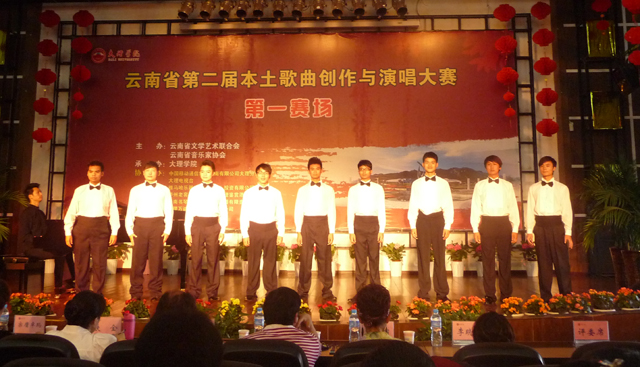 为纪念聂耳诞辰100周年及毛泽东同志《在延安文艺座谈会上的讲话》发表70周年,云南省第二届本土歌曲创作与演唱大赛于5月22日至25日在大理学院举行。大赛由云南省文学艺术界联合会和云南省音乐家协会主办,大理学院承办。目的是深入贯彻落实党的十七大提出的“推动社会主义文化大发展大繁荣”的指示精神,积极响应省委省政府提出的建设云南民族文化强省的号召,推动云南声乐事业的蓬勃发展,繁荣我省音乐创作,推广普及云南本土歌曲。来自云南艺术学院、云南民族大学、yl23411永利集团官网、大理学院、保山学院、云南艺术学院文华学院、昆明艺术职业学院、大理州民族文化工作团,以及昆明、丽江、红河、玉溪、怒江、个旧等16个地州市的20多个代表队,476名专业、业余选手参加了专业组和业余组的复赛。