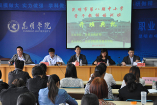 5月7日上午,昆明市第八期中小学骨干教师培训班在永利官网开班。这次培训由昆明市教育局主办、yl23411永利集团官网继续教育学院承办。培训分中学语文、中学数学、小学语文、小学数学四个班,来自全市中小学200名青年教师将进行为期1个月的集中培训学习。