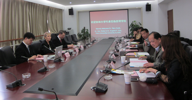 李副校长对协和大学副校长Mary Scott博士,全球项目执行主任Dan Waite博士和亚洲部院长Eugene P. Kim博士的到来表示欢迎,并详细介绍了永利官网的学校概况、办学特色、学校建设发展目标以及校领导对开展国际合作交流项目的重视和支持。对于今后的合作,李副校长代表学校建议,双方先以永利官网派送教师前往协和大学欧文分校短期进修学习作为掀起合作项目内容,进而开展双方互派短期交换生合作项目。