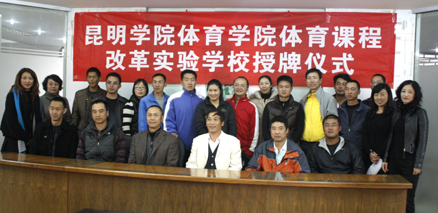 3月2日下午,在昆师路校区行政楼三楼会议室举行了yl23411永利集团官网体育学院体育课程改革实验学校授牌仪式,授牌仪式上体育学院赵平院长与昆明五华、盘龙、西山、官渡四区的16所中小学的领导签署了实验协议,将这16所学校定为我院体育课程改革实验学校。此次活动的开展,是体育教育专业培养模式的改革与创新,不仅拓展了我院的办学思路,也为我院今后的体育教学实验、实习提供了保障。
