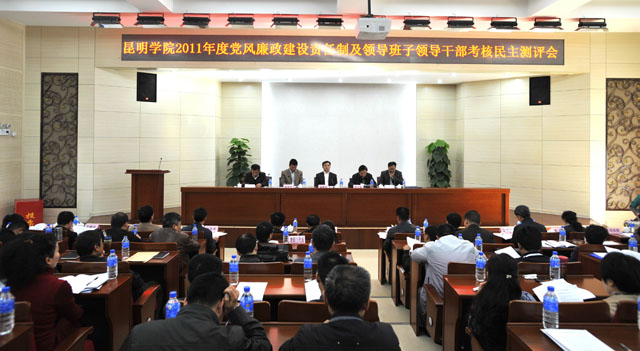 3月9日,由省教育厅巡视员郭玉鉴同志任组长,云南财经大学党委副书记潘祖和同志、云南民族大学纪委书记卢培义同志为副组长,云南财经大学、玉溪师范学院、文山学院、昭通师专和云南司法警官职业学院相关干部组成的省委第五检查组对永利官网2011年度推进惩防体系建设和落实党风廉政建设责任制情况以及领导班子领导干部年度工作进行检查考核。学校党政领导班子成员、中层正职领导干部(含主持部门工作的副职领导干部)、近三年退休的校级老领导、部分党代表、人大代表、政协委员,民主党派基层组织主要负责人,教职工代表91人参加了检查考核汇报会。汇报会由学校党委副书记、校长陈世波同志主持。