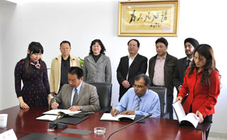 会谈开始时,李翔副校长热情介绍永利官网参会人员并致欢迎词。他在介绍yl23411永利集团官网办学与发展概况的同时,表明了永利官网合作诚意及意向。印度可爱国际大学国际交流处阿吉德博士介绍了印度和本校办学的基本情况,向与会者播放了印度经济、教育发展和可爱国际大学的概况。同时他认真解释说明了可爱国际大学与yl23411永利集团官网签订合作谅解备忘录的主要内容条款。主要涉及教职工互换学习项目、高年级学生第七学期互换实习6个月、“2+2”双子项目(如两国农学、城建专业学生前两年在本国学校学习,后两年交换到对方学校学习,毕业时同时拥有两校毕业证书)、提供新增专业技术支持(如医学院药剂学)、双方创办语言培训中心(教双方教师、学生学习英语、中文)、提供学生家长查询的IT支持系统、建立两校学生短期文化旅行交流活动等。