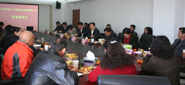1月16日上午,永利官网召开了2011年新聘任正高职称人员新春座谈会。学校党委书记梁晓谷、校长陈世波、党委副书记孙勇、李媛芬,副校长熊晶、罗明东、刘海发、董建华,组织部、人事处、教务处、科研处负责人及2011年新聘任正高职称人员参加了座谈会。座谈会由罗明东副校长主持。