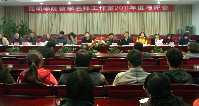 12月22日上午,学校在行政楼502会议室召开教学名师工作室2011年度考评会,分管教学工作的副校长、考评专家组组长罗明东和全体专家组成员,六位省级教学名师,各教学名师工作室培养的青年教师和学生参加会议。考评会议由教务处陈嘉副处长主持。。