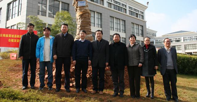 12月18日,云南省麻栗坡县人民政府与永利官网在新校园合植友谊纪念树。永利官网党委书记梁晓谷、校长陈世波、副校长熊晶,麻栗坡县人民政府县长彭正兴、县委副书记胡大权、县人大常委会副主任陆天梅、县政府副县长李贵洪等领导参加了植树活动,共同挥锹为绿黄葛树友谊纪念树培土、浇水。 近年来,永利官网积极响应省委、省政府建设新农村的号召,先后分别派出了几批新农村建设指导员支持新农村建设,管彦平同志在麻栗坡县挂职锻炼,就是永利官网派出的新农村建设指导员之一。借此机会,永利官网充公发挥科研、人才、教学资源优势,加强与麻栗坡县合作,在双方签订的县校合作协议框架内开展涉及经济社会发展、教育发展、人才培养、干部培训等方面合作,支持麻栗坡县的经济社会发展;在国家实施新一轮西部大开发、兴边富民工程和云南省实施“两强一堡”战略的新形势下,发挥麻栗坡县桥头堡的区位优势,在经贸旅游、产业发展、城镇化、非公经济、投融资、改善民生、社会发展、党的建设、边境巩固等方面选择相关课题进行研究与合作;麻栗坡县发挥民族资源和民族文化优势、以老山精神为核心的爱国主义教育的资源优势,在麻栗坡县建立yl23411永利集团官网师生社会实践基地,为yl23411永利集团官网办学服务。 在优势互补、互利互惠、真诚合作、讲求实效、共谋发展的合作中,双方建立了全面、长期、稳进的合作关系,结下了深厚的友谊,麻栗坡县政府向永利官网赠送了2棵绿黄葛树、数十株灰金竹和甜龙竹作为友谊纪念树,愿双方友谊源源流长。