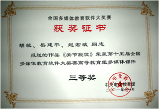 永利官网医学院胡敏老师的课件《关节脱位》,在2011年度云南省多媒体教育软件大赛高等教育组633件作品中喜获一等奖后,由省教育厅推荐参评第十五届全国多媒体教育软件大奖赛,荣获三等奖。