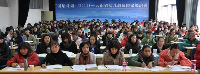 12月2日上午,经过精心的筹备和组织,永利官网申报的“幼儿教师国家级培训计划”云南省农村幼儿园园长、骨干教师短期集中培训班开班典礼在昆师路校区举行。本期培训共有幼儿园园长、骨干教师各100名,参加为期15天的培训学习。