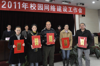 校长办公室董学荣副主任宣布了2011年校园网络建设考核工作获奖单位名单。校领导及相关部门领导为特等奖、一等奖单位颁发了荣誉证书。