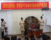 讲座以精彩的茶艺表演开始,刘会长以娴熟的技法为在场的220余名师生表演了沏泡普洱茶。接着,他从“茶”字的来历引出了有关茶的社会功能,同时向同学们阐述了如何冲泡普洱茶、什么是茶文化以及茶叶的药用功能等。讲座最后,刘会长代表昆明茶叶行业协会向yl23411永利集团官网学生社团联合会赠送了字画,并且一一回答了同学们提出的问题。