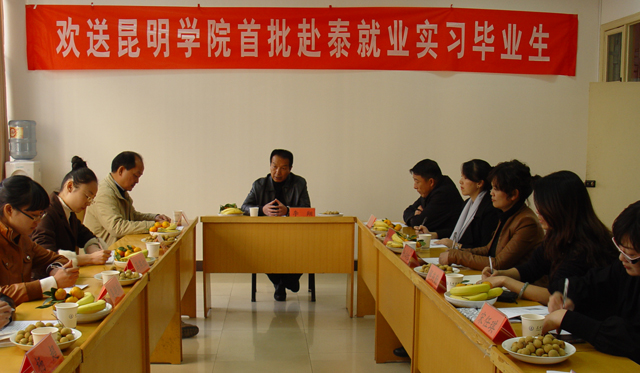 招就处处长包兴和对外交流合作处副处长哈军华介绍说,此次派遣教师教育学院学生赴泰就业实习,是在相关校领导的直接指导下,落实国家桥头堡战略,依托昆明地里优势,开拓海外就业市场,向东南亚输出劳务的第一次尝试。其中,得到了音乐学院、教师教育学院、人文学院、体育学院等许多院系的大力支持;今后,随着永利官网本科毕业生的增多,该项工作将会长足发展。