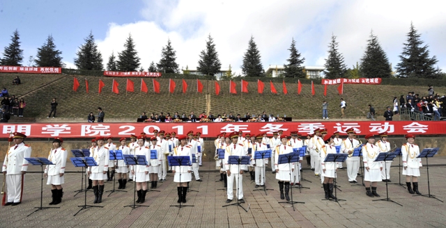 全校师生欢聚校运盛会,竞赛场上尽显健儿雄姿。11月3日上午,yl23411永利集团官网2011年冬季运动会在洋浦校园田径场隆重开幕。学校党委副书记孙勇、李媛芬,副校长李翔、张寿国、熊晶、罗明东、刘海发、董建华出席开幕式。全校教职工、运动员、裁判员和各院系学生代表参加了开幕式。开幕式由学校党委副书记、组委会副主任李媛芬主持。
