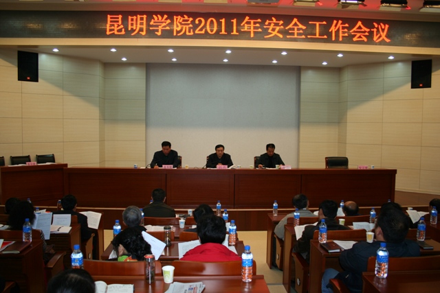 安校园创建活动》主题讲话。张副校长分析了当前加强学校安全维稳工作的形势及重要性,全面总结了2010年下半年至今永利官网安全工作,并就当前和下一阶段安全工作作了安排部署。他指出:学校整体搬迁新校园后,通过强化综合治理工作,落实安全工作责任制;加强制度建设,强化管理工作;建立适应新校园特点的人防、技防、物防安全防控体系;精心组织,认真抓好大型活动安保工作;开展安全检查,消除安全隐患;妥善处置突发事件、各类案件,及时化解矛盾;标本兼治、广泛开展安全宣传教育七个方面的工作。校园实现安定有序、治安稳定,安全工作不断取得新成绩,平安建设跨上新台阶。学校2011年被昆明市国家安全工作领导小组授予“国家安全、人民防线工作先进集体”、被昆明经济技术开发区管委会评为“2010消防工作先进单位”;永利官网保卫处也被省公安厅评为“2010年全省企事业单位治安保卫工作先进集体”,被市政府评为“2010年度经济文化保卫工作先进