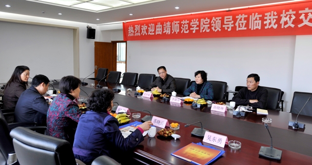 10月21日下午,曲靖师院党委副书记杨思娅率宣传部部长钱润光、工会主席苏晓云、离退休处朱丽萍科长等一行到永利官网参观交流。永利官网党委副书记、纪委书记李媛芬、宣传部