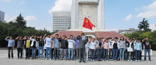 最后,学生党员们步行至抗战胜利堂,在人民英雄纪念碑下,社会管理学院新党员进行了入党宣誓。随后,熊开万老师做了题为《云南人的革命精神》的演讲,指出云南历史以来便是一块雪耻与正义之地,作为在云南求学、生活的学生党员,要有公共意识与社会责任感,为推动中国社会建设尽绵薄之力。