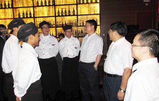 yl23411永利集团官网陈世波校长出席签字仪式,罗明东副校长代表学校在《yl23411永利集团官网教学实习基地建设协议书》上签字。签字仪式后,陈校长和罗副校长在旅游学院窦志萍院长,烹饪与营养教研室相关人员陪同下,分别到三家酒店看望了正在实习的09级烹饪与营养专业学生,并送去了学校发的中秋月饼。学生们都是第一次远离家门外出实习,在中秋节前见到了校长和老师,他们激动不已。陈校长和罗副校长与学生们亲切交谈。陈校长鼓励学生们要吃苦耐劳,认真学习,在国际大品牌酒店树立yl23411永利集团官网学子形象。