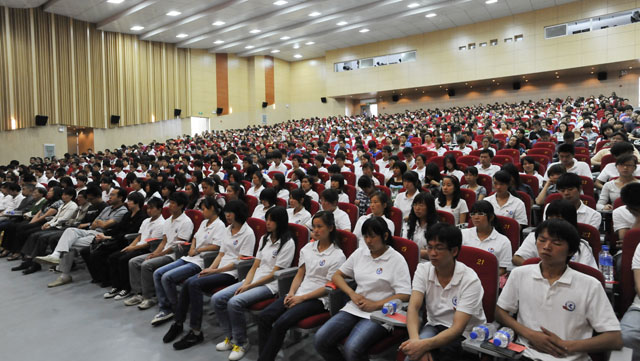 6月24日上午,永利官网在洋浦新校区学生会堂隆重召开庆祝中国共产党成立90周年大会。全体校领导,各党总支、直属党支部师生党员代表,新党员和入党积极分子共1300余人参加了庆祝大会。大会由校党委副书记、校长陈世波主持。