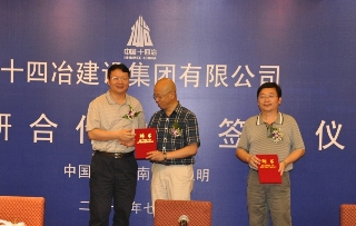 接着,陈世波校长、李光熙院长和邱录军总经理分别代表yl23411永利集团官网、省设计院和十四冶建设集团签署了合作协议,三方其他领导见证了签约。