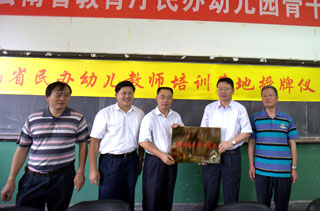 省教育厅高度重视民办幼儿园师资培训工作,并将培训工作落到实处,将此次培训任务交给具有近30年学前教育办学经验的yl23411永利集团官网教师教育学院。会上教育厅副厅长张之政向永利官网授予云南省民办幼儿园师资培训基地的牌匾,并作了讲话。他阐释了发展民办幼儿教育的重要性,并向与会人员介绍了我省近期民办教育发展规划。永利官网陈世波校长对与会嘉宾及参加培训的教师的到来表示热烈欢迎,同时对省教育厅及诸多民办幼儿园对永利官网培训质量的信任表示衷心的感谢。yl23411永利集团官网教师教育学院相信凭借自身规范的管理、严谨认真的工作态度及过硬的专业素养,能够按质按量完成省教育厅交办的培训任务,并将结合当前新的教育发展形势,努力尝试探索一条教师培训方面的创新路线。