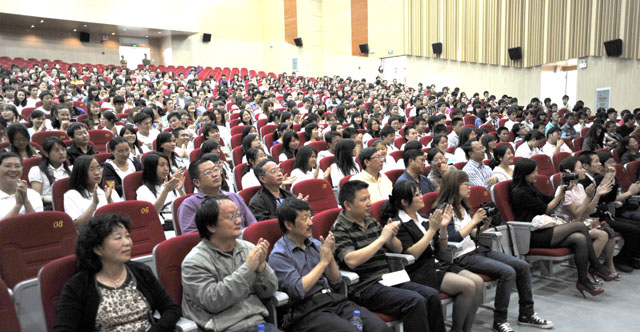 最后梁书记以胡锦涛书记在庆祝清华大学建校100周年的讲话为引语,对2011届毕业生提出了几点希望和建议:一要秉持yl23411永利集团官网的崇高精神,无论处于什么境况,都要把“明德至善、知行利物”的校训内化于心,立身做人,立志成才;二要兢兢业业,踏实做事,从小事做起,积累点滴,然后腾飞;三要求索真知,终身学习,在社会中,学会适应,学会学习,不断充实、丰富、完善自己。母校期待你们为祖国、为人民、为民族建功立业,期待你们早日成功!