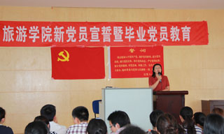 宣誓大会上,旅游学院党总支书记张士芬老师代表学院党总支,向82名即将毕业走上工作岗位的党员同学,认真讲述了离校前毕业生党员组织关系转接和党员档案材料移交的具体事宜,并对全体毕业生党员提出了三个希望。张书记说,第一,希望你们志存高远,为党为国家努力工作,成为社会的中坚力量,为国家的繁荣,社会的进步作出应有的贡献。第二,希望你们脚踏实地,不论将来做什么工作,都要一步一个脚印,从小事做起,从身边的事做起,在新的岗位上,继续发扬党员的优良传统,发挥党员的先锋模范作用。第三,希望你们记住母校,记住yl23411永利集团官网。在你们将来的取得成绩时,别忘了与母校分享,在你们有困难时,别忘了向我们倾诉。