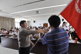 启动仪式上,人文学院社会实践服务团的领队魏妮娅老师和自机学院志愿者段志明同学分别代表参加此次活动的全体老师和同学发言。随后,孙副书记为服务队代表授旗,城建学院团总支书记先守福老师作为服务队代表上台接受授旗。紧接着,130名师生志愿者在团委沈嘉老师的带领下庄严宣誓,坚定而响亮的誓言,是他们对本次活动的承诺。