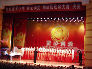 在中国共产党成立90周年之际,由云南省关工委、昆明市关工委、昆明市教育局等单位联合举办的昆明市青少年“童心向党”唱红歌歌咏大赛于5月28日落下帷幕。yl23411永利集团官网音乐学院合唱队代表永利官网关工委参加最后的总决赛,最终获得本届大赛艺术贡献奖、优秀组织奖,张新、张忠两位老师荣获指导老师奖。