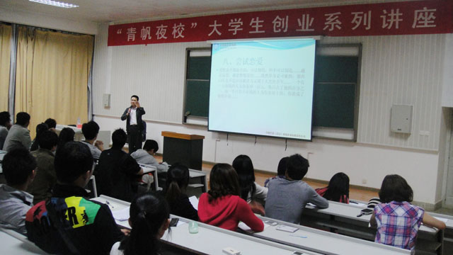 由校团委和招生就业处主办,学生社团联合会承办的yl23411永利集团官网第三期“青帆夜校”大学生创业系列讲座第三讲于5月12日晚,在惟实楼6102教室开讲。新前景教育培训机构董事长、中财仕通(北京)财税咨询有限责任公司首席运营官付仕伟老师为永利官网220余师生作了《我们创业》的讲座。