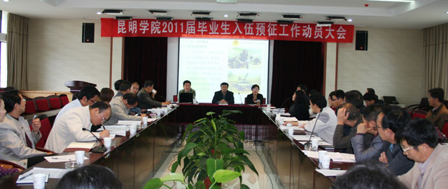 孙副书记强调:全校要按照云南省高校工委、省教育厅和云南省军区司令部的统一部署,为切实做好2011年永利官网毕业生入伍预征工作,努力完成永利官网毕业生入伍预征工作目标任务。他要求:一要充分认识高校毕业生入伍预征工作的主要意义,进一步增强入伍预征工作的责任感和使命感。各教学院、系要把高校毕业生入伍预征工作当做当前最紧要的大事来抓,积极组织动员,精心安排部署,认真抓好落实,力争预征报名人数占应届毕业生男生的比例不低于2010年(10%以上)。二要采取强有力措施,努力为部队输送高素质人才。通过举办一次现役高校毕业生士兵典型专场报告会,每个院系开展一次政策宣讲活动,每个班级开展一次入伍预征主题班会活动,给每位毕业生发一条入伍预征信息短信,给每位毕业生发一本入伍预征宣传册“五个一”工作,广泛开展宣传发动,引导毕业生踊跃报名应征。各单位要加强应征对象的指导、帮扶,持续做好入伍预征工作,为应征毕业生提供快捷、高效、优质的指导与服务,组织应征毕业生网上预征、登记报名,指导应征毕业生填写《应届毕业生预征对象登记表》和《应征入伍高校毕业生补偿学费代偿国家助学贷款申请表》;在预征对象离校前,要进行集中培训,讲明离校后征兵时间和渠道,指定专人保持联系,持续为预征对象提供指导、服务;在冬季征兵时再次提醒预征对象报名应征,为补办预征手续的毕业生开辟“绿色通道”,确保每一位符合条件的应届毕业生都能入伍。各单位要认真落实入伍预征优惠政策,激发毕业生应征积极性,学生入伍后,要认真做好学费补偿和助学贷款代偿政策的落实工作,加强政策和工作人员的培训,切实提高工作效率和水平,及时、准确地将补偿代偿的费用发到每一个符合条件的入伍毕业生手中;学生退役后,报考硕士研究生、专升本等落实好升学优惠政策,配合做好退役安置工作,让入伍预征优惠政策惠及每一位应征毕业生,解除学生的后顾之忧。职能部门要加强对责任落实、宣传动员、报名登记、指导填表、后续服务等工作环节的检查、监督和指导,切实把入伍预征工作做细、做实、做好,力争今年入伍预征工作在报名数量、预征数量和预征质量上取得新突破。