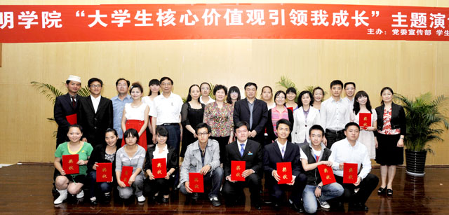 根据省委宣传部、省高校工委、团省委《关于举办云南省 “当代大学生核心价值观引领我成长”主题演讲比赛的通知》精神,结合永利官网推进大学生思想政治教育和校园文化建设实际,永利官网党委宣传部、学生处、团委共同主办的yl23411永利集团官网“当代大学生核心价值观引领我成长”主题演讲比赛于5月18日晚在惟行楼1501报告厅隆重举行。