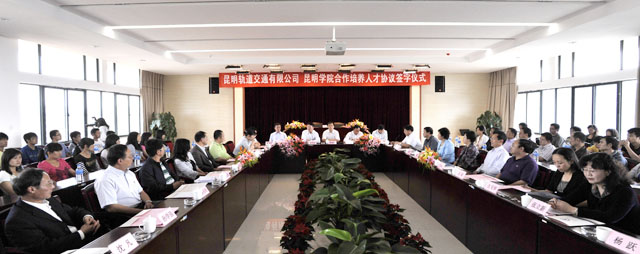 罗副校长还表示:学校严格按照协议内容,团结协作,共同努力,不断提高教师教学水平,不断改善实验实训条件,不断改革探索新的教学模式与方法,努力培养出合格的、适应轨道交通工作的人才。尤其是要本着“教以致用、学以致用”的要求,把培养工作与轨道交通建设工作结合起来,探索现场教学、现场实训的新路子,着力培养“上手快、后劲足、能创新”的高素质应用型人才。相信,有市委、市政府坚强领导,合作双方的通力合作,yl23411永利集团官网一定不辜负市委、市政府的希望,一定能够培养出合格的应用型人才,并把这一合作不断引向深入,为昆明轨道交通事业的发展作出贡献。 签字仪式得到了在昆主流媒体的关注。云南电视台,云南日报,春城晚报,云南信息报,昆明日报等媒体作为现场采访和报道。