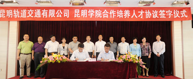 昆明轨道交通有限公司宗庆生副总经理与yl23411永利集团官网陈世波校长共同签订了《昆明轨道交通有限公司 yl23411永利集团官网合作培养人才协议书》。河波副市长、李河流副秘书长,王征副总经理,梁晓谷书记等领导与教师代表共同见证了合作协议签字。协议从今年9月到2014年9月,yl23411永利集团官网将从目前在校的机械设计制造及自动化本科专业中,重点培养150名城市轨道交通运营和设备应用方向的学生。这些学生合格毕业后将进入昆明轨道交通有限公司就业。 罗明东副校长主持签字仪式,并在总结讲话时指出:本次签字仪式简朴而庄重、时间简短而意义重大,双方合作协议的签订,标志着校企双方合作培养城市轨道人才工作正式启动,对昆明城市轨道交通事业的发展具有重要的意义,对昆明市、yl23411永利集团官网、昆明轨道交通有限公司的发展都具有重要的意义。对昆明市来说,是落实科学发展观、贯彻市委九中全会精神的重大举措;对yl23411永利集团官网来说,作为一所地方新建综合性应用型本科大学,主动适应地方经济社会发展需要,探索培养高素质应用型人才的有效途径,办出自己的特色和水平,校企合作是yl23411永利集团官网抢抓机遇实现发展的体现和重要途径及模式,是体现应用型本科大学特色的重要标志;对昆明轨道交通公司来说,作为用人单位与yl23411永利集团官网合作培养所需要的人才,由于同属昆明市兄弟单位,有天然联系、地域空间的相近性,便于培养出供需对路、适应工作需要的人才,是轨道公司人才需求与使用稳定、健康、有序发展,促进轨道公司又好又快发展的重要保证。总之,对双方发展都有利,这是合作的基础与前提。