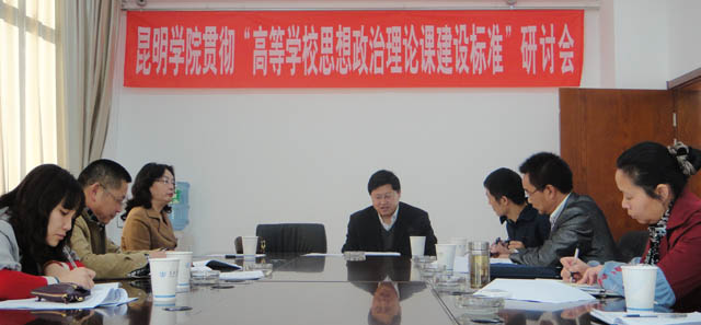 与会领导认真学习教育部、中共云南省委高校工委的相关文件精神,条分缕析、解读《高等学校思想政治理论课建设标准(暂行)》的各项指标,并结合我院实际,就如何贯彻落实,进一步加强和改进我院思想政治理论课建设问题进行了深入研讨,明确了今后思想政治理论课改革和建设的思路和方向。