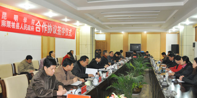 3月18日上午,双方在麻栗坡县公务大楼举行县校合作协议签字仪式。仪式由管彦平副书记主持,参加仪式的县领导和学院领导先后讲话。