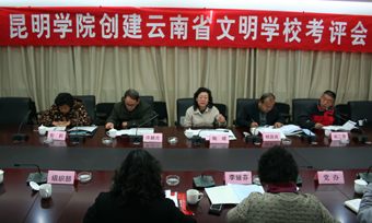 1月14日,省委高校工委副书记、省教育厅党组成员陶晴,教育厅德育处处长杨国良等领导一行6人莅临我院,对我院创建“云南省文明学校”工作进行校园走访巡查、听汇报、召开师生座谈、意见反馈四个环节的考核验收。学院党委副书记、纪委书记、精神文明建设指导委员会副主任李媛芬和学院精神文明建设指导委员会全体成员参加了考评验收会。
