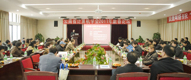 1月15日下午,云南省计算机学会2011年新春论坛在我院隆重召开。论坛由云南省计算机学会主办,yl23411永利集团官网承办,昆明雷神科技发展有限公司、福建星网锐捷网络有限公司、北京博创兴业科技有限公司及昆明时育物科技有限公司协办。论坛由云南省计算机学会第七届理事会秘书长、云南大学信息学院副院长张学杰教授主持。我院副院长罗明东教授、云南省计算机学会全体理事、我院计算机与网络技术系全体领导、现代教育技术中心领导及特邀嘉宾共100名代表出席了此次论坛。