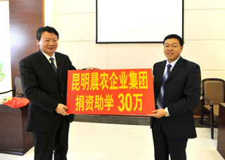 会上,陈世波院长向李云锁董事长授博士工作站牌。同时,李云锁董事长向yl23411永利集团官网捐赠助学金30万元人民币,以此感谢yl23411永利集团官网对晨农的大力支持及友情合作。
