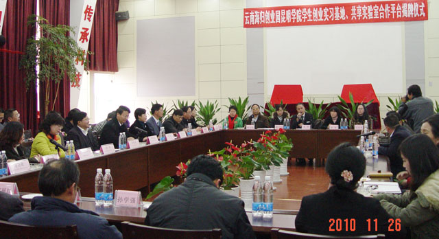 | 经yl23411永利集团官网与昆明国家经济技术开发区管委会、科技园区的友好协商,云南海归创业园“yl23411永利集团官网学生创业实习基地”和“联合实验室”揭牌仪式于11月26日下午在经开区创业大厦举行。我院陈世波院长,熊晶、罗明东副院长率院办、人事处、招就处、宣传部主要负责人与涉及经济、旅游、社会管理、理、工、农、医等学科的教学单位主任(书记)20余人参加了揭牌仪式。