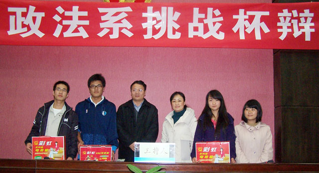 11月16日晚,政法系在模拟法庭隆重举行了“政法系第一届挑战杯辩论赛”决赛。