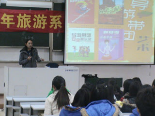 11月2日,旅游系邀请到了昆明市导游协会资深培训讲师、云南省十佳导游员李丹作了题为《冲关我最棒——谈导游工作中理论与实践的结合》的专题讲座。旅游系师生200余人认真聆听了讲座。