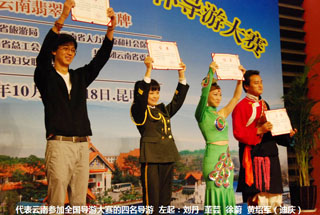 本次比赛可谓强手如林,经过激励角逐,yl23411永利集团官网旅游系选派的四位选手均获得了骄人成绩,其中董芸老师获得了2010年云南省导游大赛普通话组冠军,再次获云南省旅游局授予的“金牌导游”称号,并被云南省妇联授予“巾帼建功标兵”。旅游系申娜、王伟(普通话组)和郭王斌(英语组)三位同学获得云南省旅游局授予的“优秀导游”称号。旅游系董芸老师将代表云南省参加12月份在西安举办的2010年全国导游大赛。
