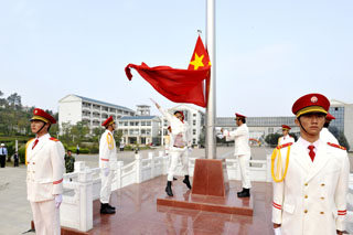 面对鲜艳的五星红旗冉冉升起,庄严雄壮的中华人民共和国国歌声响彻新校园每个角落。此时爱国激情澎湃在广大师生胸间,爱校情怀激荡在昆院人心田。昆院人为伟大祖国的繁荣富强进步而倍感自豪,为yl23411永利集团官网的欣欣向荣而昂扬振奋!