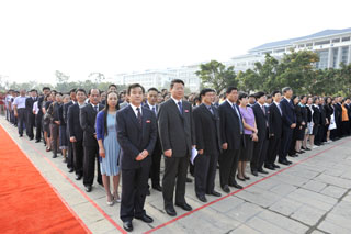 | 金菊含笑、硕果飘香,国旗高扬、师生欢庆。9月1日清新的早晨,我院15000余名师生第一次站在新校园聂耳广场国旗杆下,举行庄严的升国旗仪式。