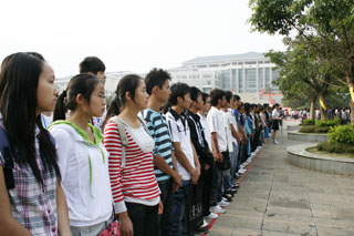 升旗仪式上,校学生会主席、经济系2007级学生张立良同学代表全院学生发言。他表达了同学们爱国爱校的真挚情怀和对领导、老师感激之情,表达了同学们朝气蓬勃的精神风貌和奋发有为的远大志向,表示相信同学们一定能够严以律己,珍惜时光,努力学习,全面发展,成为感恩社会、回报母校,深受社会欢迎的优秀人才,成为yl23411永利集团官网骄傲自豪的校友。