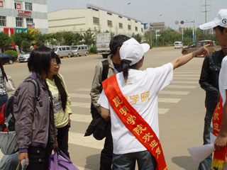 8月30日至31日,学院团委新生接待工作全面展开。在校外各个新生接待站点,两天来共接待新生近4000人次。同时,校内接待咨询点上,团学干部们分工协作,引导新生进行报到注册,各环节工作都有条不紊地进行。“新同学,欢迎你!需要帮忙吗?”一句句热心话语,如同一股股暖流,使新生及家长倍感温暖。一位负责接待的志愿者说:“虽然这次接待工作很辛苦,但能给新同学带来方便,我们感到很充实、很自豪。”迎新期间,团委通过校园广播、宣传标语、宣传单等形式,为新生们尽快熟悉、了解新校园提供了帮助。