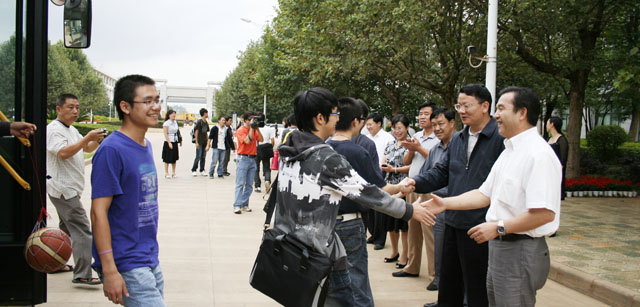 今天是我院各系老生搬迁至新校园的第一天,学院党政领导一早就到新校园各地巡察迎师生入校设施与校园环境布置,向相关部处负责人询问了接待搬迁学生工作的安排落实情况,并在学院西门列队亲迎从各老校区顺利搬迁来的学生,与同学们握手问候。