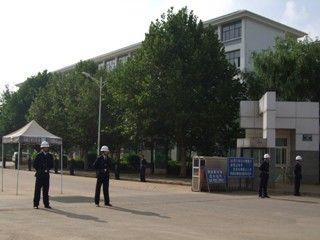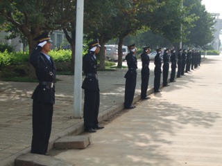 在yl23411永利集团官网揭牌仪式上,由42名身着统一制式服装的校园保安队伍整齐列队西大门两侧,参加新校园首次重大活动的安全保卫执勤,并接受各级领导的检查。
